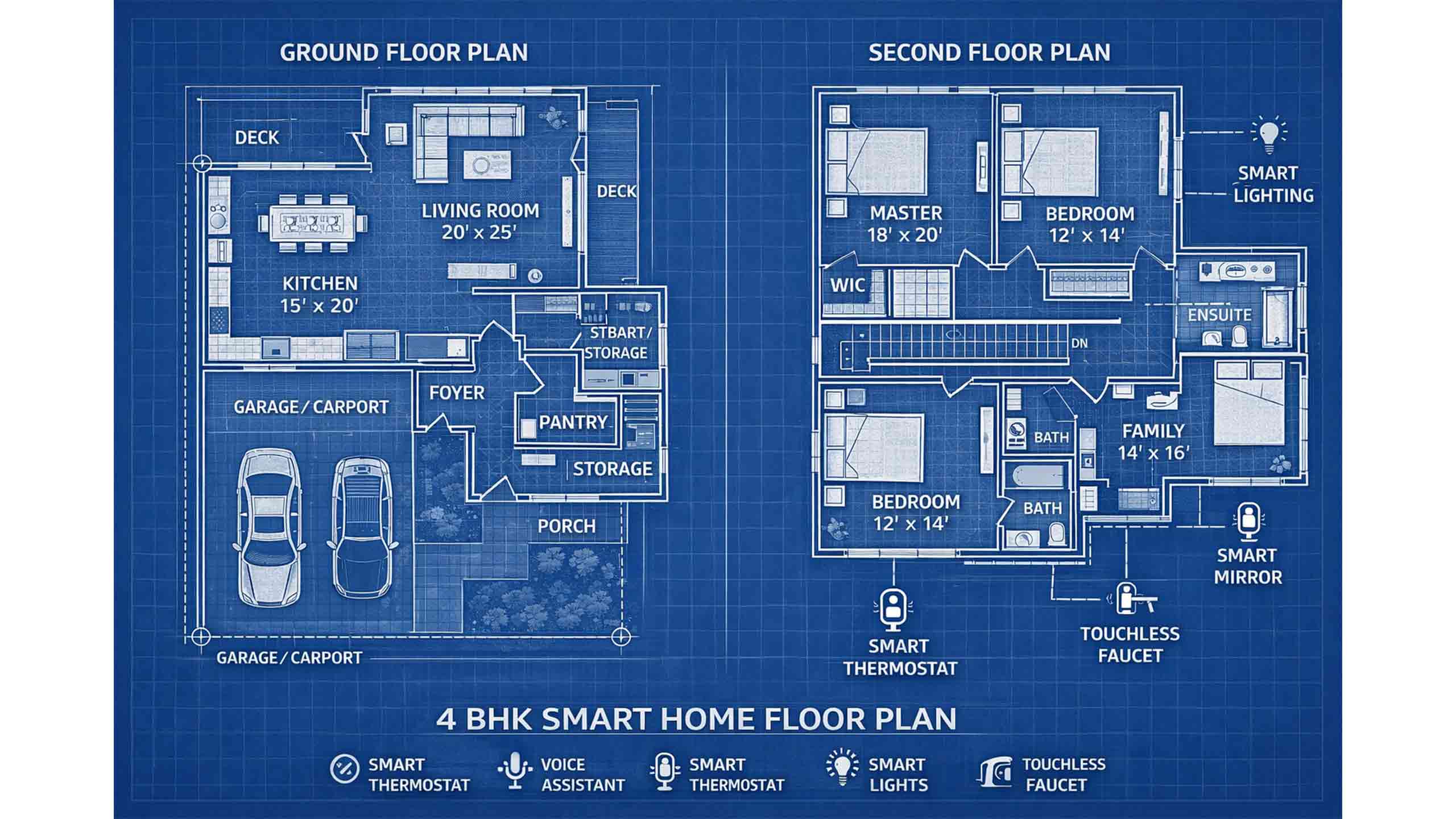 This 4-bedroom, 2-story smart home is the perfect blend of modern design, luxury living, and cutting-edge technology. With smart home features, energy-efficient systems, and future-proof sustainability, this home is ideal for those looking for a connected, convenient, and eco-friendly lifestyle. Whether you’re looking to reduce energy costs, enhance convenience with smart tech, or enjoy a beautiful, modern home, this design provides everything you need for a comfortable and sustainable living experience.