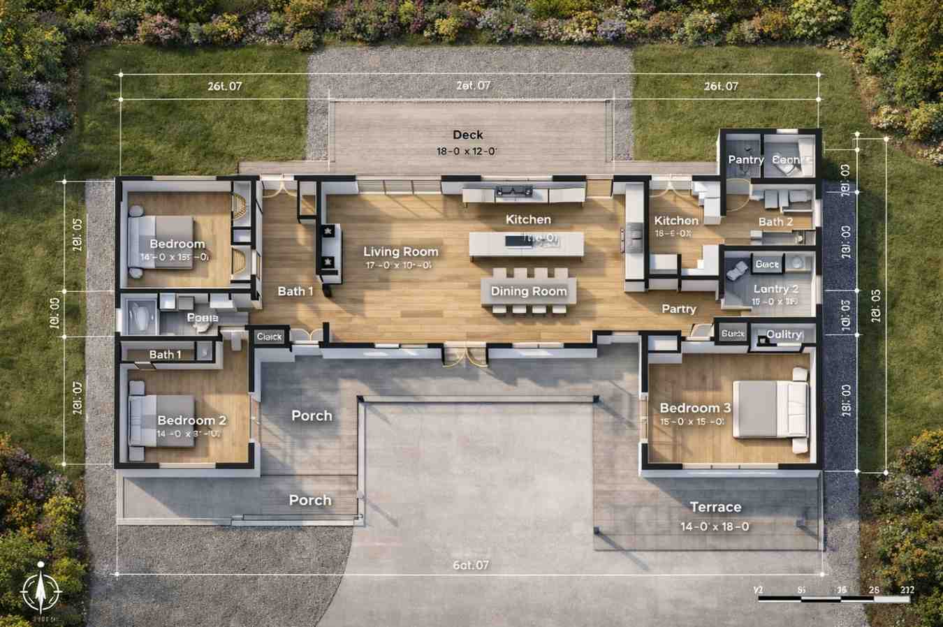 | Terrace | 14′ x 18′ | Outdoor | Additional outdoor space |