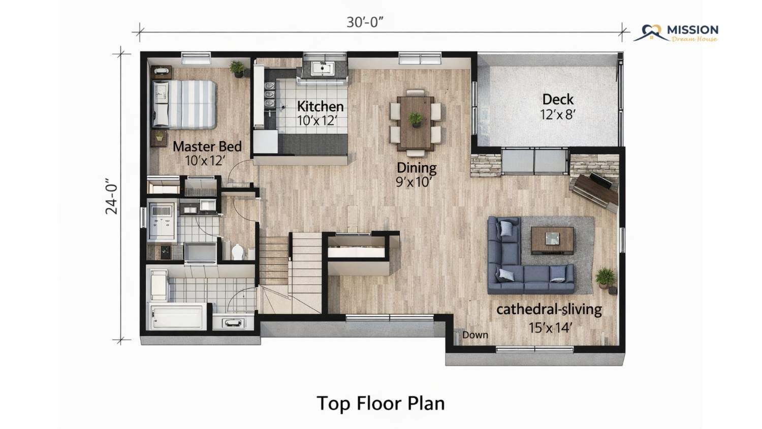 Master Bedroom — 10′ × 12′